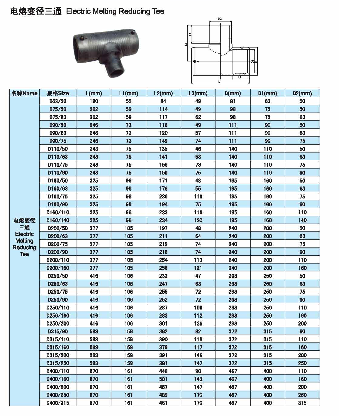 電熔異徑三通